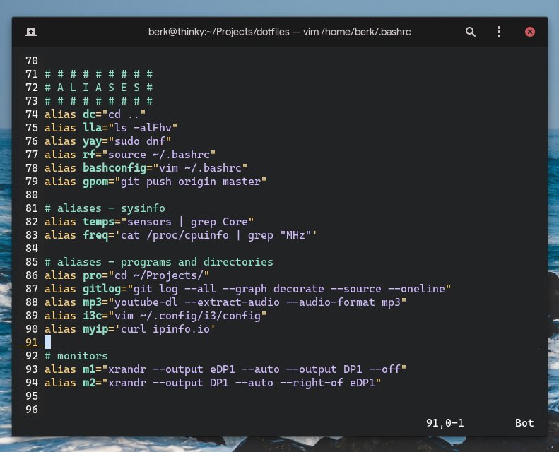 If there is one thing that makes using the terminal or command line way of doing things, its got to be aliases. What these are are basically shortcuts for long commands you don’t want to type up. For instance, if I’m working on a git repository and I don’t want to keep writing git push origin master all the time, I can create an alias and put that in my .bashrc file and bind it to a simple word like gpom.
