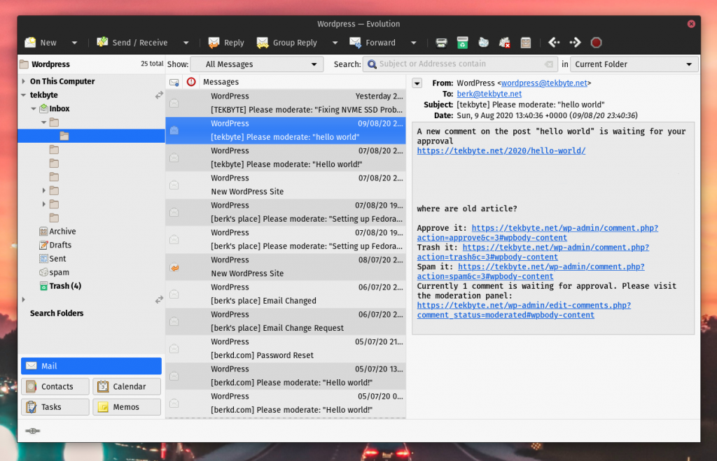 Geary is another option however I find it to be very basic and offer no real functionality and is only aesthetically pleasing. It’s made for GTK / GNOME-esque desktop environments which use a header bar. Another alternative is Kmail which I actually used a bit and found it to be very powerful. I’d rank Kmail a close second to Evolution, tied with Thunderbird.